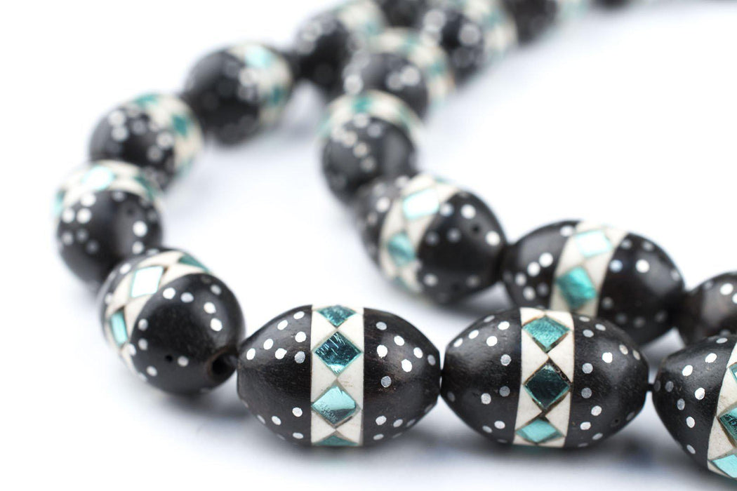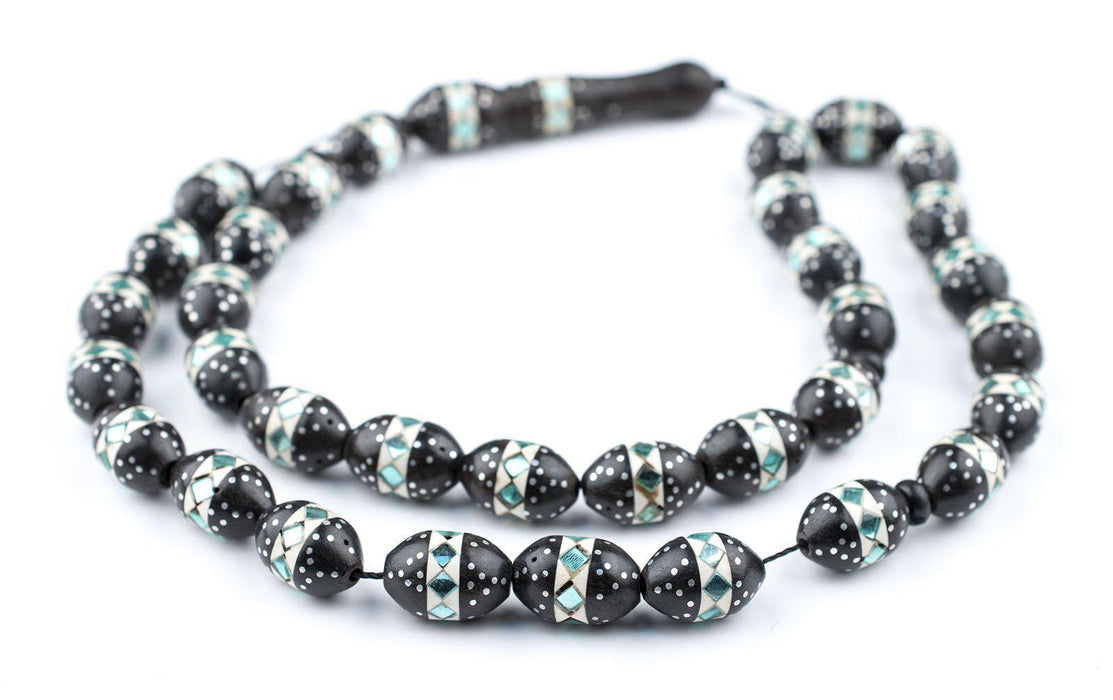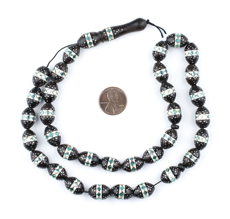 Teal Mosaic Inlaid Ebony Arabian Prayer Beads