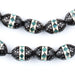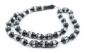 Evocative of a lost world, these beautiful Arabian prayer beads have been handcrafted by a master artisan. Look carefully and you will see that each bead has been exquisitely inlaid in meticulous detail, a quality of work hard to find in today’s day and age. The refined quality of these beads belies the long journey they have traveled through the back alleys and markets of North Africa. Prayer beads such as these embody the intersection artistic expression and faithful devotion that are a cornerstone of the Islamic world. Each bead on this strand measures approximately 14-15 x 9mm with hole size of 1mm and strand length of 23" long. Metal inlay may not be sterling. Use as-is or to accent your beaded creations. Limited Supply. Get yours today!