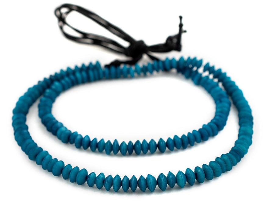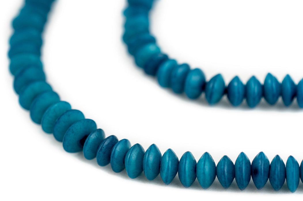 These teal color saucer beads are made from natural seeds. The slight variations in colors and shape of the beads will make them a fun addition to your beading project. Look carefully and you will see that each bead is unique. Individual beads measure 5-6 x 8-10mm diameter with approximately 110 beads on each 26" strand. Use them as spacers or accent beads. Take note that the length of these strands are longer than usual, and finished with a nice black cord. The rustic character of these beads is sure to add an authentic touch to your jewelry designs!
