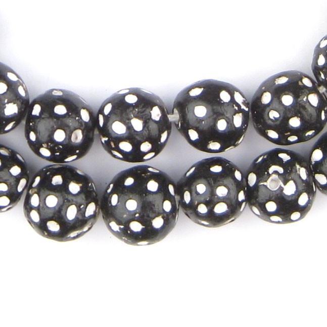 Known as thousand eye beads, the white dots represent eyes to protect from the evil eye. Beautifully hand crafted, each bead may have a different number of which dots. However, the size of beads are fairly uniform.