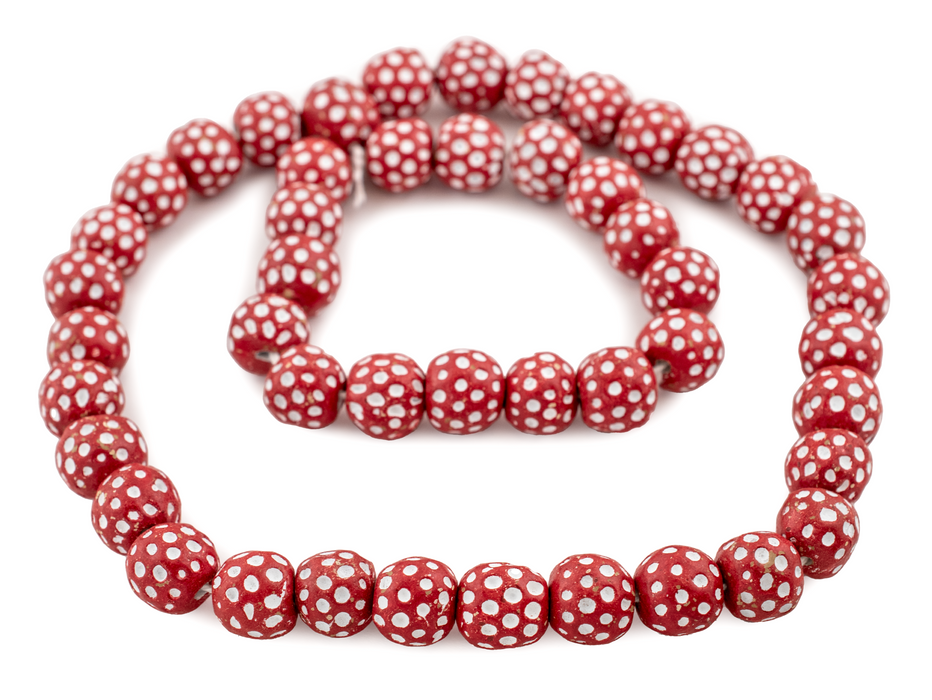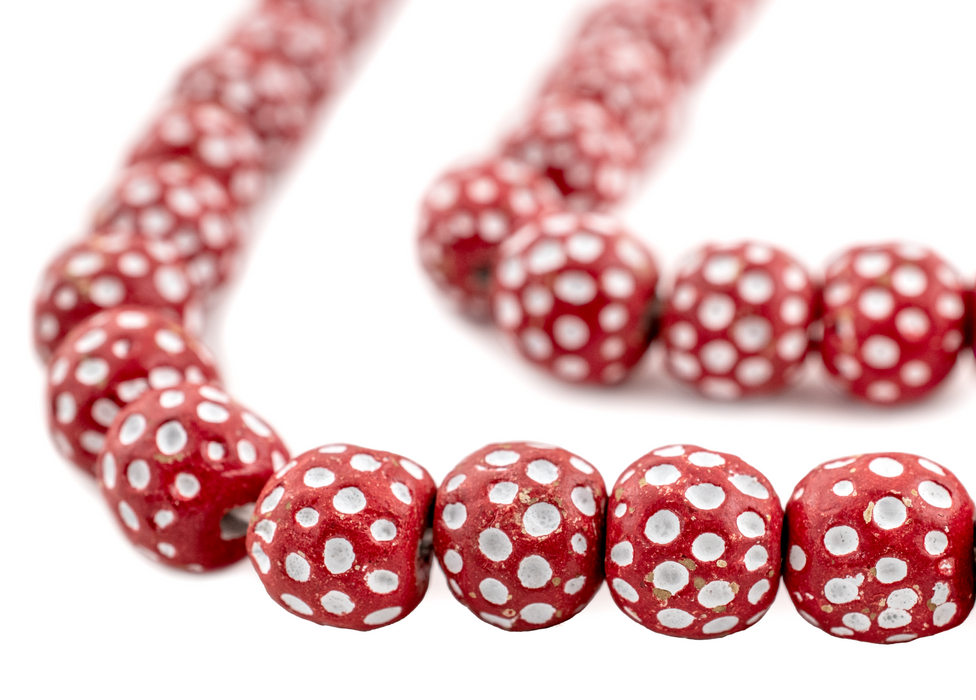 Beautifully made Terracotta beads, resembles the older Italian Red Sunk beads which were trade in Africa in the late 1800 early 1900. Original ones were also called Evil Eye Beads, to protect people from any harm that could come to them from Evil Eye. The beads are individually hand made with a diameter of 14mm. You'll receive a full strand measuring approximately 24" in length.