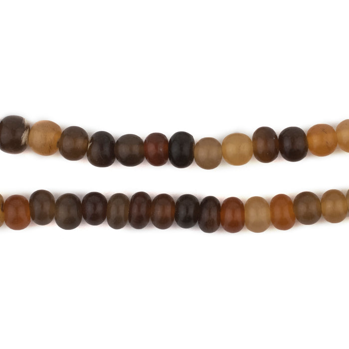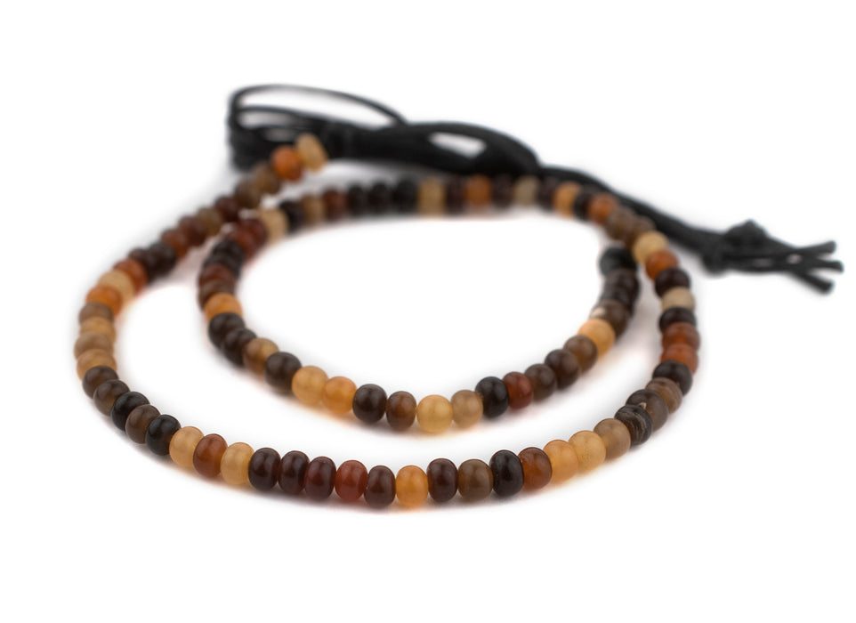 These beautiful beads are made from natural horn. The slight variations in colors and shape of the beads will make them a fun addition to your beading project. Look carefully and you will see that each bead is unique. Individual beads measure 4-5 x 5-6mm diameter with approximately 93 beads on each 20" strand. Use them as spacers or accent beads. Take note that the length of these strands are longer than usual, and finished with a nice black cord. The rustic character of these beads is sure to add an authentic touch to your jewelry designs!