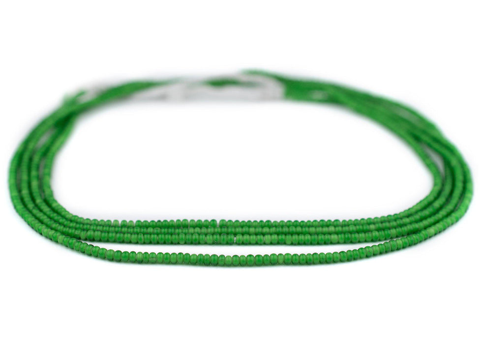 Tiny Green White Heart Beads (2mm)