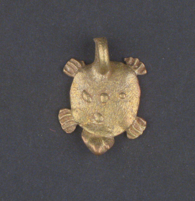 Here we have a beautiful African brass pendant in the shape of an African tortoise. The pendant measures 30mm in height from top to bottom, and approximately 23mm in width. This African pendant is made using the "Lost Wax" technique and comes from Ghana. There may be some slight variation in design.