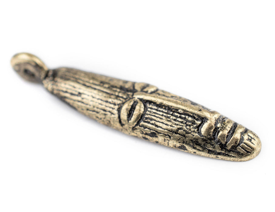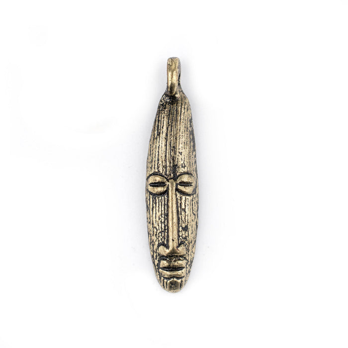 Elongated Mask Brass Pendant from Africa (47x11mm)