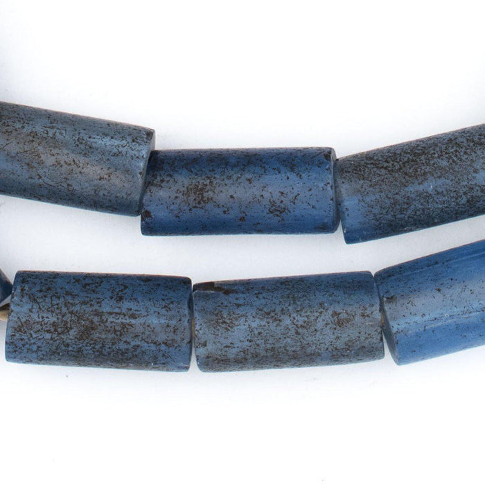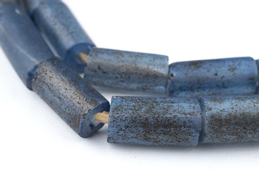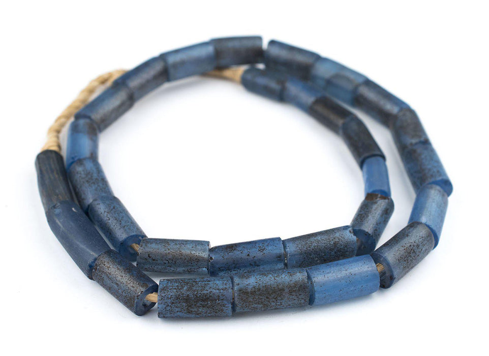 Translucent Blue Fulani Glass Tube Beads (17mm)