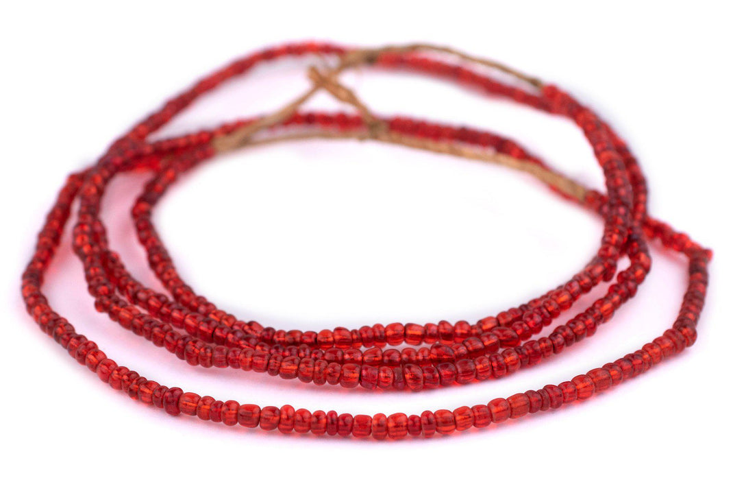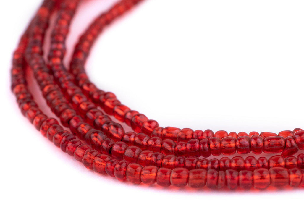 Add a little luster to your jewelry designs with these red translucent Ghana glass seed beads. Individual beads measure 2-4mm wide by 4mm diameter with approximately 200 beads on each 24" strand. Two strands pictured. Each is sold individually.