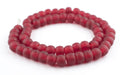 These red padre beads are fashioned after traditional Spanish prayer beads. Take note of their unique barrel shape. These beads are superb to use as spacers in your unique jewelry designs. Beads measure roughly 9 x 11-12mm in size, with a hole size of about 3mm. You will receive a full strand measuring 23 inches in length. Great quality at a wholesale value!