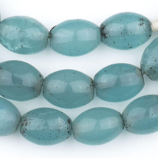 Colodonte beads are a traditional oval-shaped bead made in Czechoslovakia during the mid 20th century. These beads were exported from Czechoslovakia to Western Africa and used for trade. Colodonte beads are most commonly found in red, white, and black colors. To find them in this rare translucent teal color is becoming exceedingly difficult. Each bead measures approximately 16 x 12mm with a hole size of 1mm. Limited supply available.