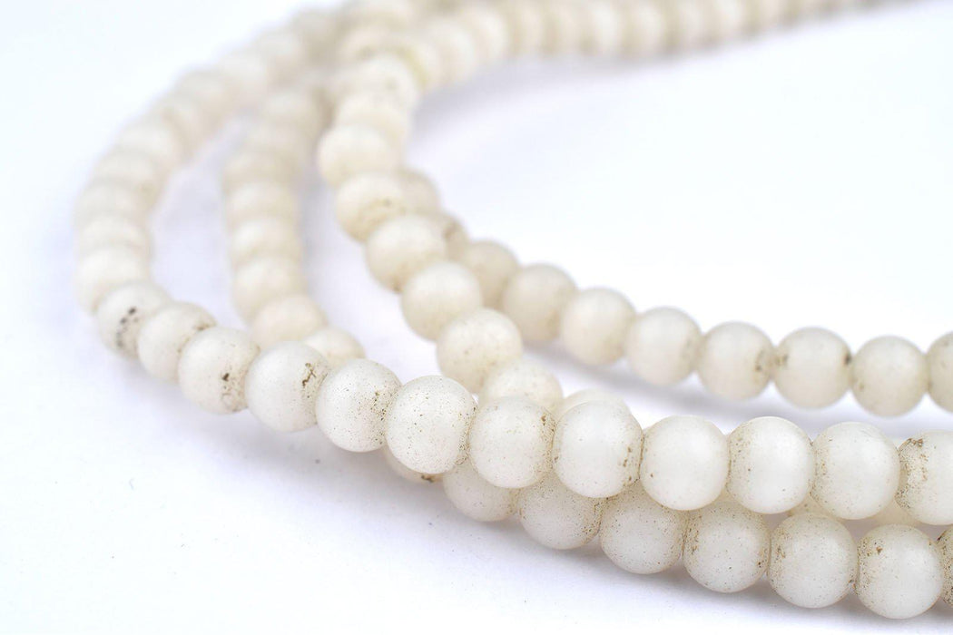 Take a look at these cool translucent white glass baby padre beads from Nigeria. These little beads are great as spacers or to add character to your jewelry designs. Two strands pictured. Each strand is sold individually. Try them today!
