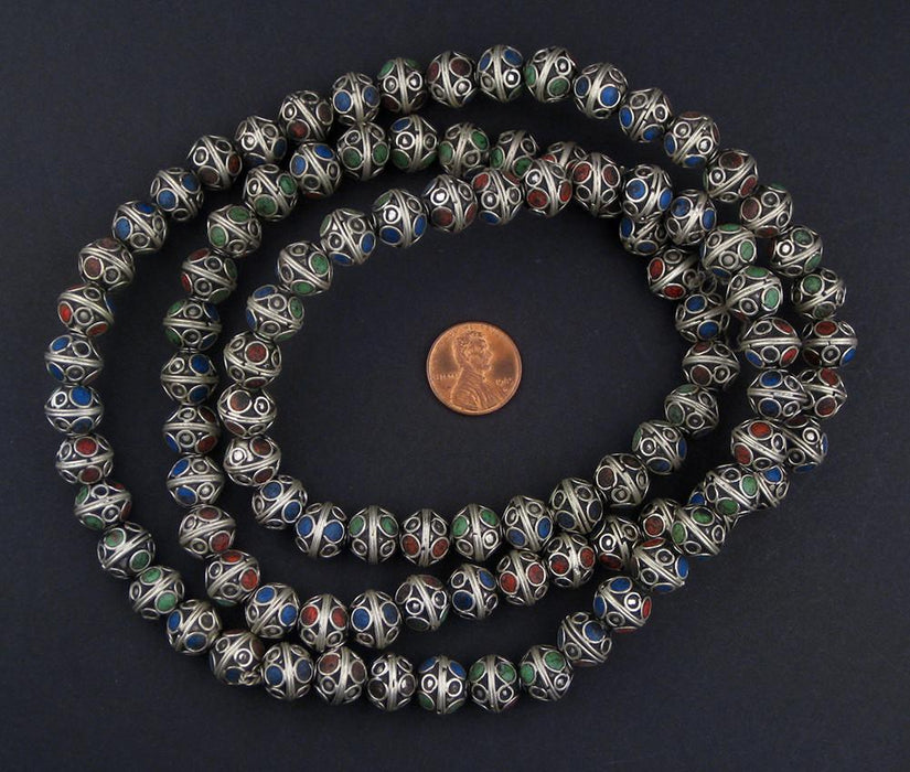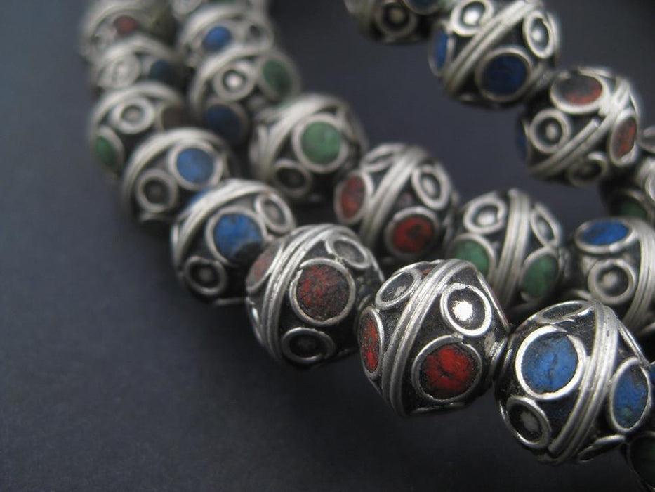 Colorful and eye-catching, these cute artisanal enameled Berber Beads are individually crafted. Accented with red, green and blue colors they would add a beautiful touch to your beaded jewelry. Several strands of beads are shown. This item is sold as a set of 10 beads.