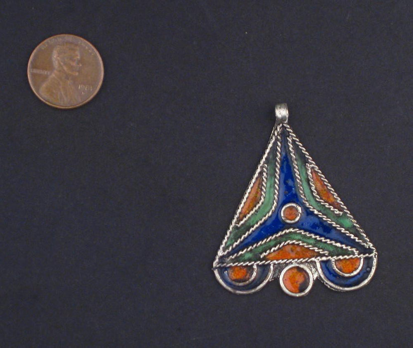This handmade Berber pendant has been accented with colorful enamel in traditional geometric design. Each pendant is unique and may show minor variation from picture.