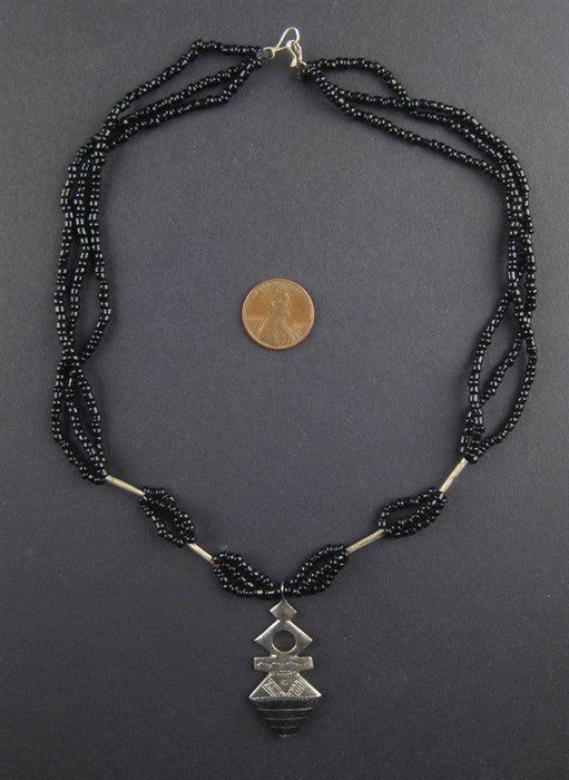 This beautiful pendant was handcrafted in Niger West Africa by the Tuareg people. Each pendant features traditional designs and may include the Milky Way, Berber Cross, Southern Cross, Shooting Star or other motifs. This pendant measures 40-60mm and is made with ebony wood. Pendants may show some signs of wear. This pendant has been strung with beads and clasp. Wear the necklace 'as-is' or remove pendant and include as a centerpiece in your own personal design!