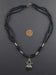 This beautiful pendant was handcrafted in Niger West Africa by the Tuareg people. Each pendant features traditional designs and may include the Milky Way, Berber Cross, Southern Cross, Shooting Star or other motifs. This pendant measures 40-60mm and is made with ebony wood. Pendants may show some signs of wear. This pendant has been strung with beads and clasp. Wear the necklace 'as-is' or remove pendant and include as a centerpiece in your own personal design!
