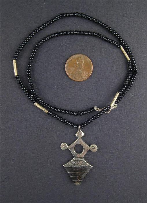 This beautiful pendant was handcrafted in Niger West Africa by the Tuareg people. Each pendant features traditional designs, measures 40-60mm in length and is made with ebony wood. Pendants may show some signs of wear. This pendant has been strung with beads and clasp. Wear the necklace 'as-is' or remove pendant and include as a centerpiece in your own personal design! This pendant is unique so you will receive the pendant that is pictured.