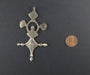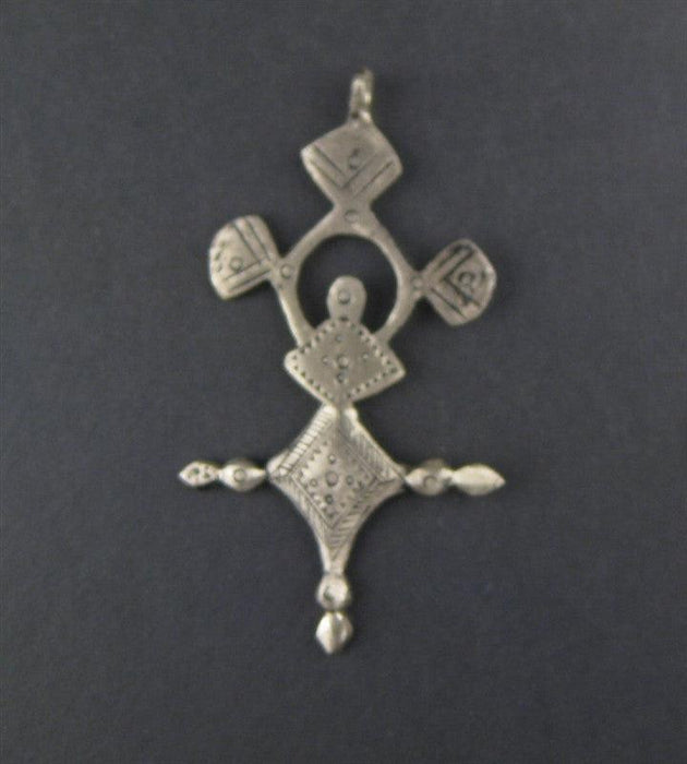 This handmade Tuareg pendant was made in Southern Morocco. Each pendant features traditional designs and may include the Milky Way, Berber Cross, Southern Cross, Shooting Star or other motifs. This pendant measures approximately 45x90mm. Pendant may show some signs of wear and may show minor variation from design pictured.