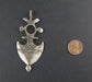 This handmade Tuareg pendant was made in Southern Morocco. Each pendant features traditional designs and may include the Milky Way, Berber Cross, Southern Cross, Shooting Star or other motifs. This pendant measures approximately 35x75mm. Pendant may show some signs of wear or minor variation from design pictured.