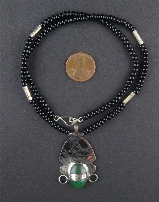 This beautiful pendant was handcrafted in Niger West Africa by the Tuareg people. Each pendant features traditional designs, measures 40-65mm in length and is made with natural stone. This pendant has been strung with beads and clasp. Wear the necklace 'as-is' or remove pendant and include as a centerpiece in your own personal design! You will receive the exact pendant pictured.