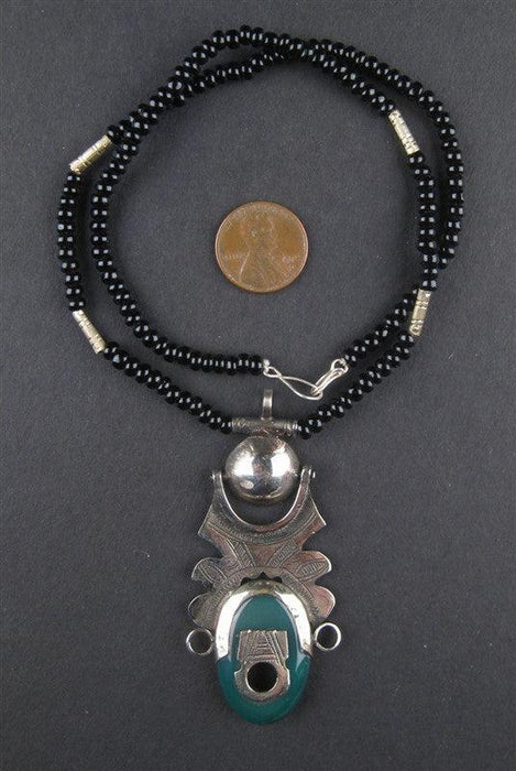 This beautiful pendant was handcrafted in Niger West Africa by the Tuareg people. Each pendant features traditional designs, measures 40-65mm in length and is made with natural stone. This pendant has been strung with beads and clasp. Wear the necklace 'as-is' or remove pendant and include as a centerpiece in your own personal design! You will receive the exact pendant pictured.