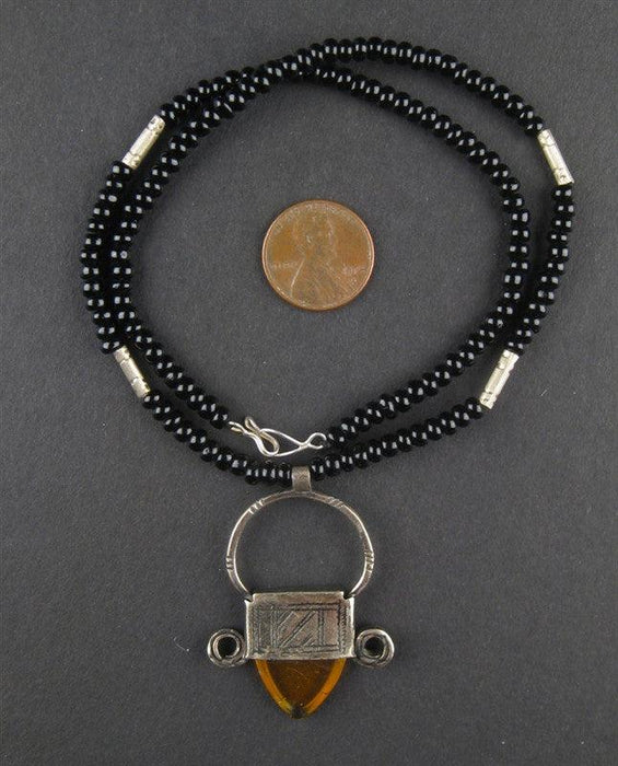 This beautiful pendant was handcrafted in Niger West Africa by the Tuareg people. Each pendant features traditional designs, measures 40-65mm in length and is made with natural stone. This pendant has been strung with beads and clasp. Wear the necklace 'as-is' or remove pendant and include as a centerpiece in your own personal design! You will receive the exact pendant pictured.
