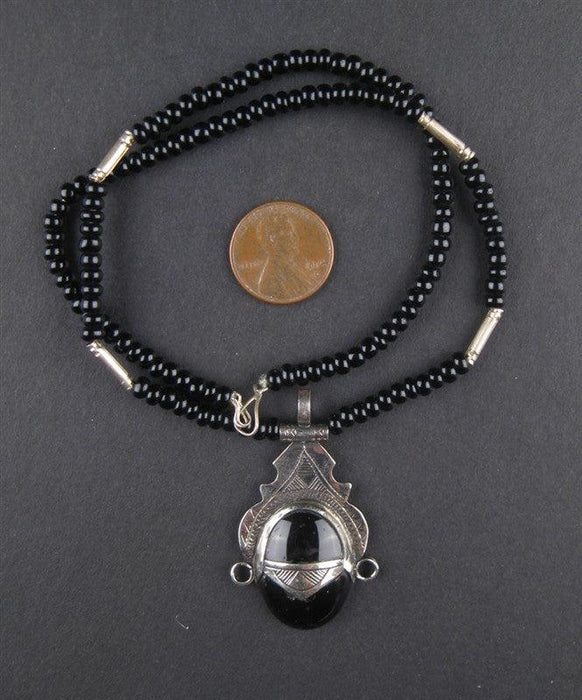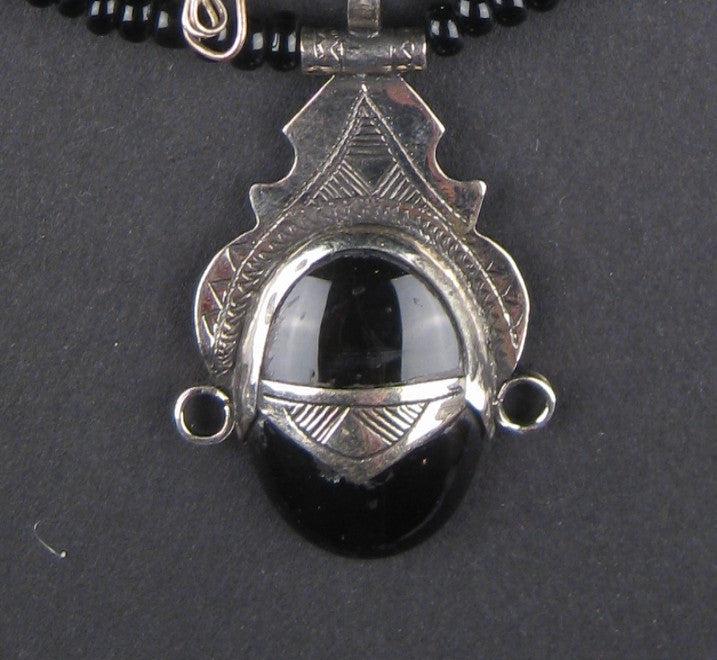 This beautiful pendant was handcrafted in Niger West Africa by the Tuareg people. Each pendant features traditional designs, measures 40-65mm in length and is made with natural stone. This pendant has been strung with beads and clasp. Wear the necklace 'as-is' or remove pendant and include as a centerpiece in your own personal design! You will receive the exact pendant pictured.