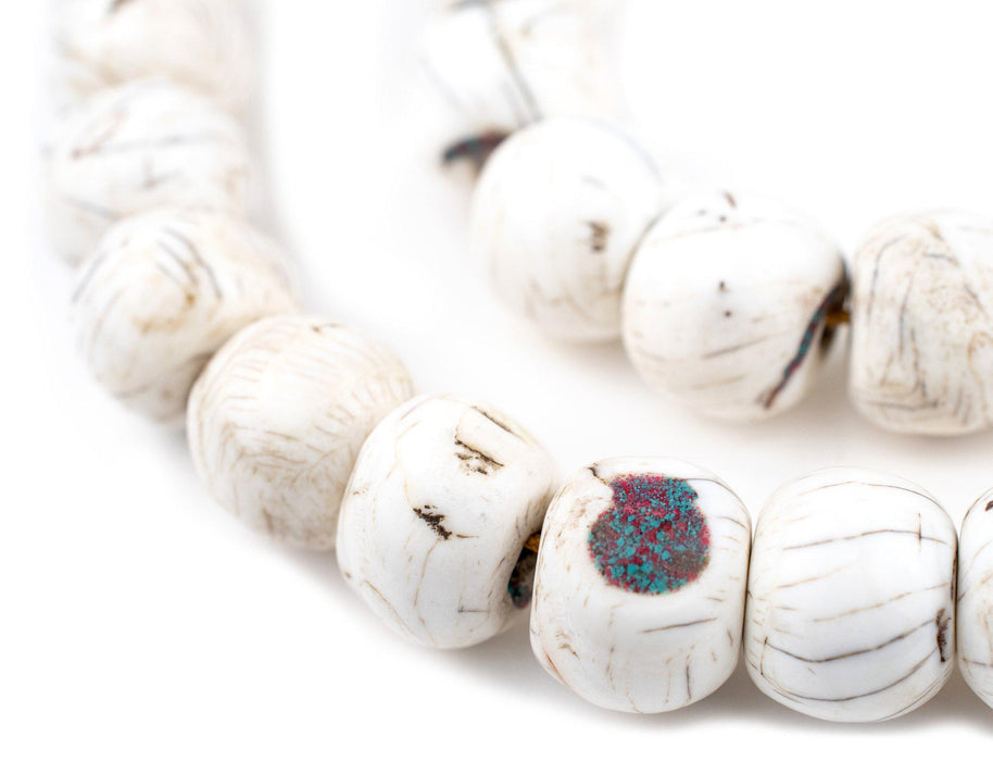 Turquoise and Coral-Inlaid Tibetan Mala Shell Beads (108 Beads)