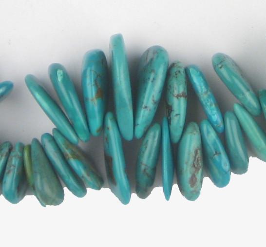 Beautiful handmade turquoise beads, Beads are graduated. The beads measure 8-23mm in length, 2-3mm thick and the strand is about 16inches long. here is approximately 140 beads per strand.