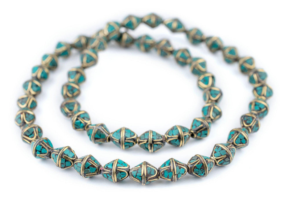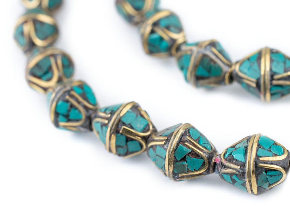 Turquoise Bicone Inlaid Nepali Brass Beads (14x11mm)