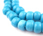 Take a look at these beautiful turquoise blue padre beads. Made from Czech glass, padre beads such as these have been traded in African since as early as the late 1800 - early 1900's. Individual beads measure approximately 6mm wide and 9mm in diameter. Versatile Beads. Get your strand today!