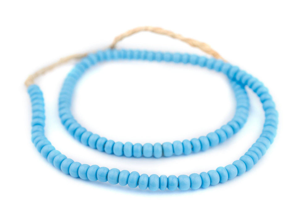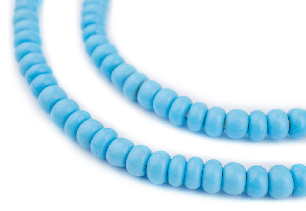 Add the relaxing tone of Turquoise to your design projects with these fun strands of Light Turquoise Glass Beads. Handcrafted in Ghana these artisan glass beads are exceptionally high-quality. Each strand is approximately 24" in length. Each individual bead is about 4-4.5 x 6-6.5mm with a roughly 2mm stringing hole. Multiple strands pictured. Each strand is sold individually. Grab 2 or 3 strands for yourself today!