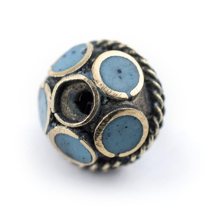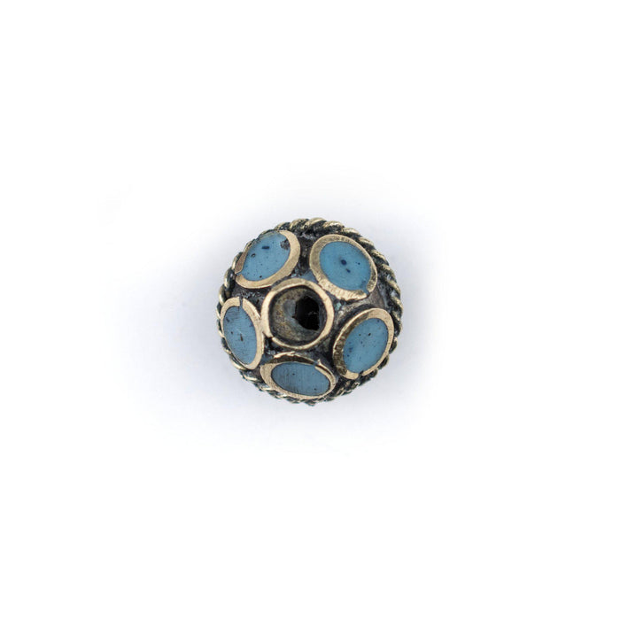 Turquoise-Inlaid Afghan Tribal Silver Bead (16mm)