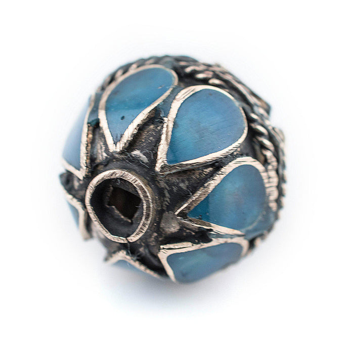 Turquoise-Inlaid Afghan Tribal Silver Bead (20mm)