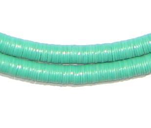 Take a look at this unusual strand of Turquoise color African Phono Record beads. The strand measures a whopping 34" long with beads measuring 6mm in diameter. Shade of beads may vary slightly from photo. Lightweight and fun to wear!