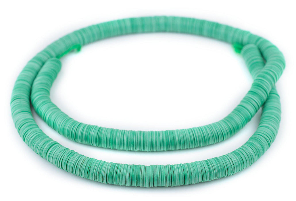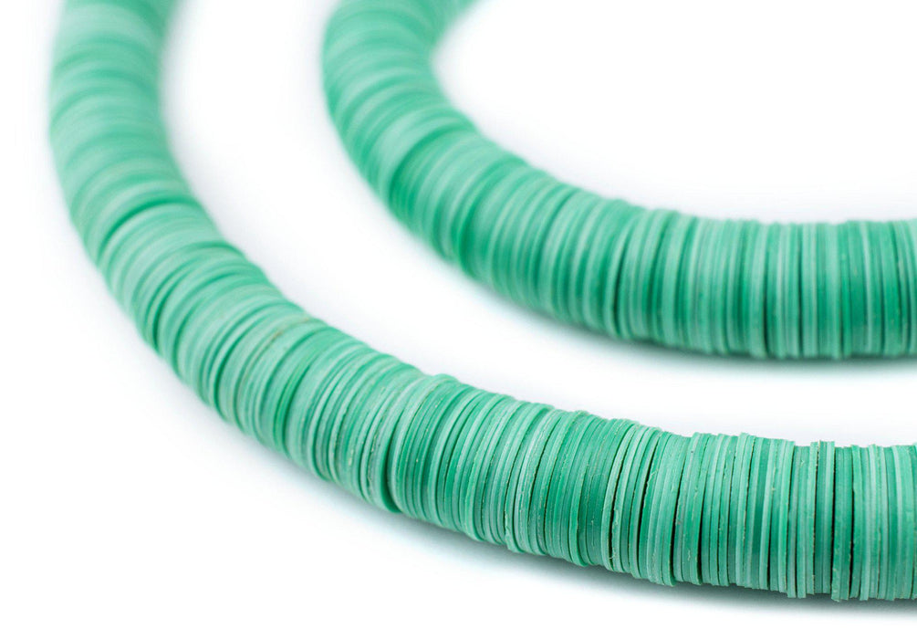 Admire the deep Turquoise color of these stylish Vinyl Beads. Custom made in Ghana Africa these Vinyl beads are great for designing boho chic inspired jewelry pieces. They also look great when form as is as a waist chain. Every strand is approximately 35" in length. Each bead is about 1 x 14mm with a roughly 1mm hole. Get yours today!