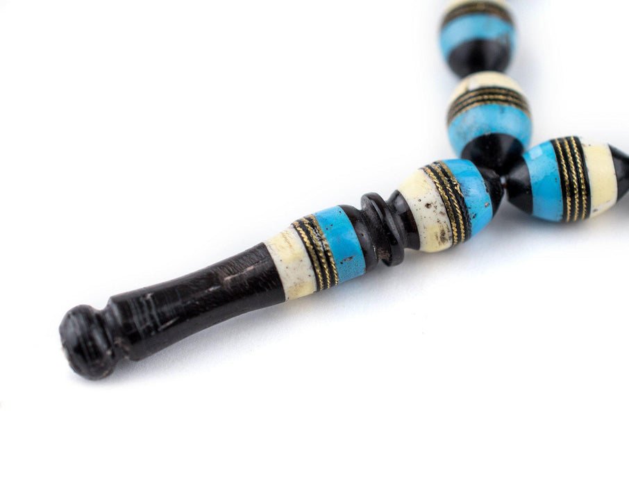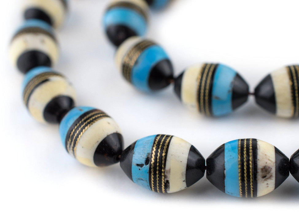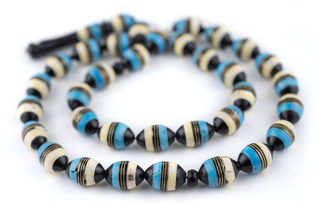 Turquoise & White Color Inlaid Oval Arabian Prayer Beads (14x9mm)