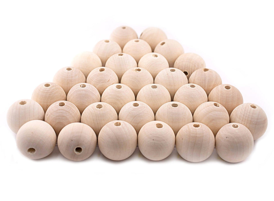 Unfinished Natural Wood Beads (40mm, Set of 30)