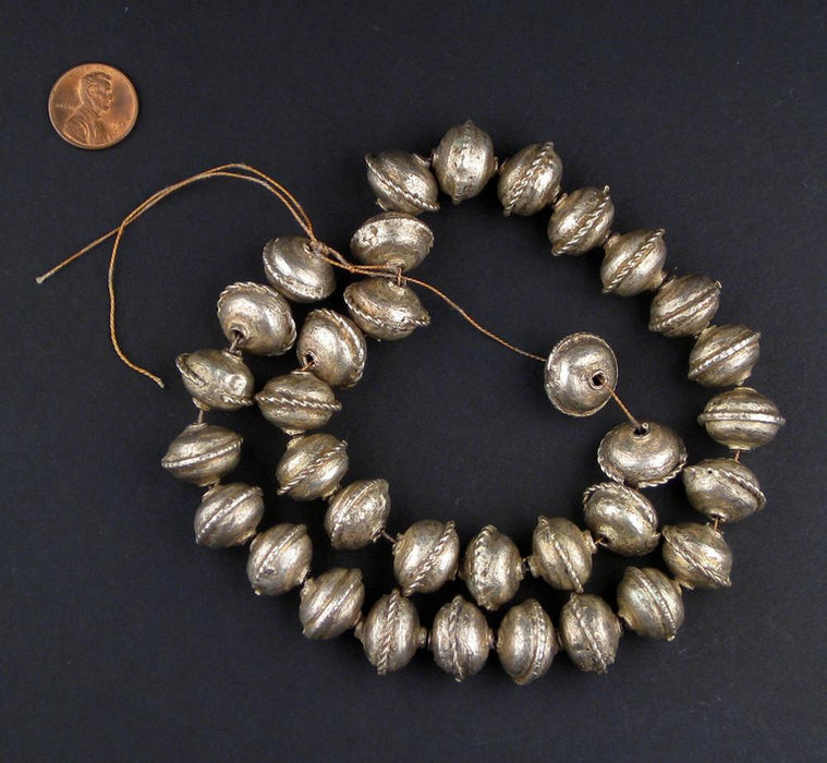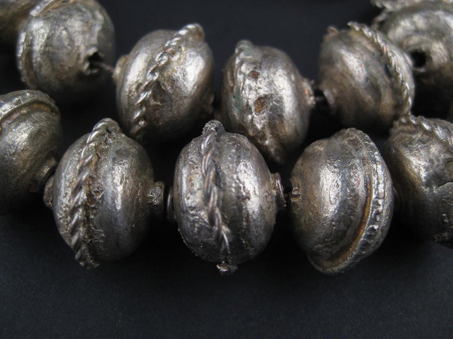 Unique Ornate Artisanal Ethiopian Bicone Silver Beads