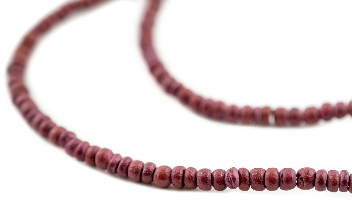 These small brown wooden beads are handmade using repurposed coconut wood. Coconut wood is an eco-friendly and sustainable material for beading. Each bead measures approximately 1-3 x 3mm in size, with a hole size of approximately 1mm. Each strand measures approximately 15 inches length. Get yours today.