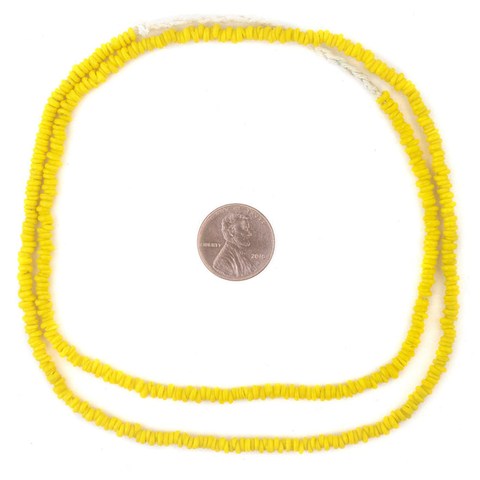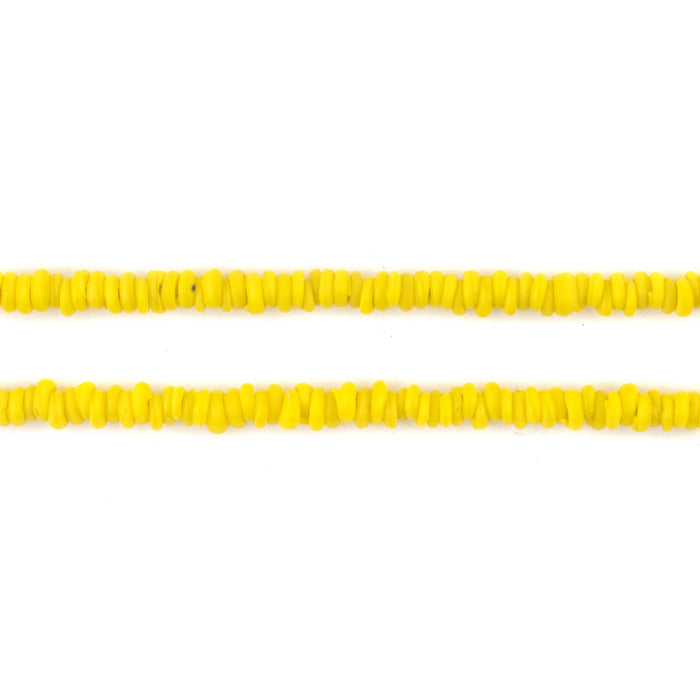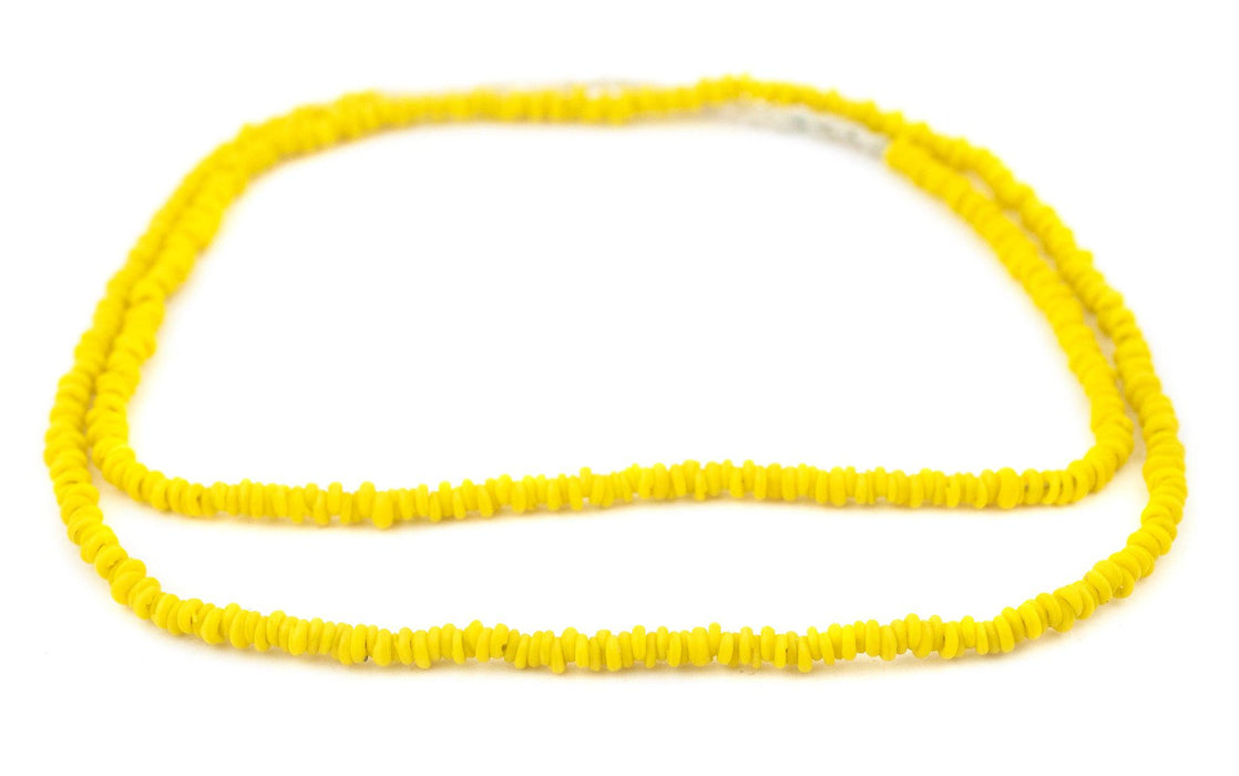 These yellow java glass heishi beads are handmade by independent artisans on the island of Java. Pay close attention and you will notice a very special heishi shape, coupled with a beautiful texture. These beads are perfect to use as in your ethnic jewelry designs. These beads measure approximately 1-2 x 3.5mm, with a hole size of 1-2mm. Each strand measures approximately 26 inches in length. Shade may vary slightly from photo. Great quality at a wholesale value!