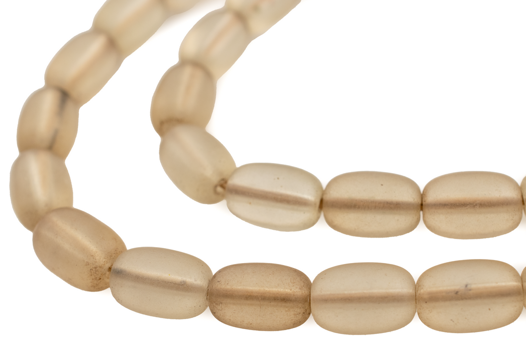 More commonly found in red, white, and black, these rare Colodonte beads are a hard-to-find clear color. Likely of Bohemian origin, these vintage beads were found in Nigeria and have passed through many hands. Each bead measures 17mm wide and 12mm in diameter with approximately 49 beads on each extra long 32" strand. Individual beads will show some discoloration due to age. Each strand is unique and may vary slightly from photo. Limited supply.