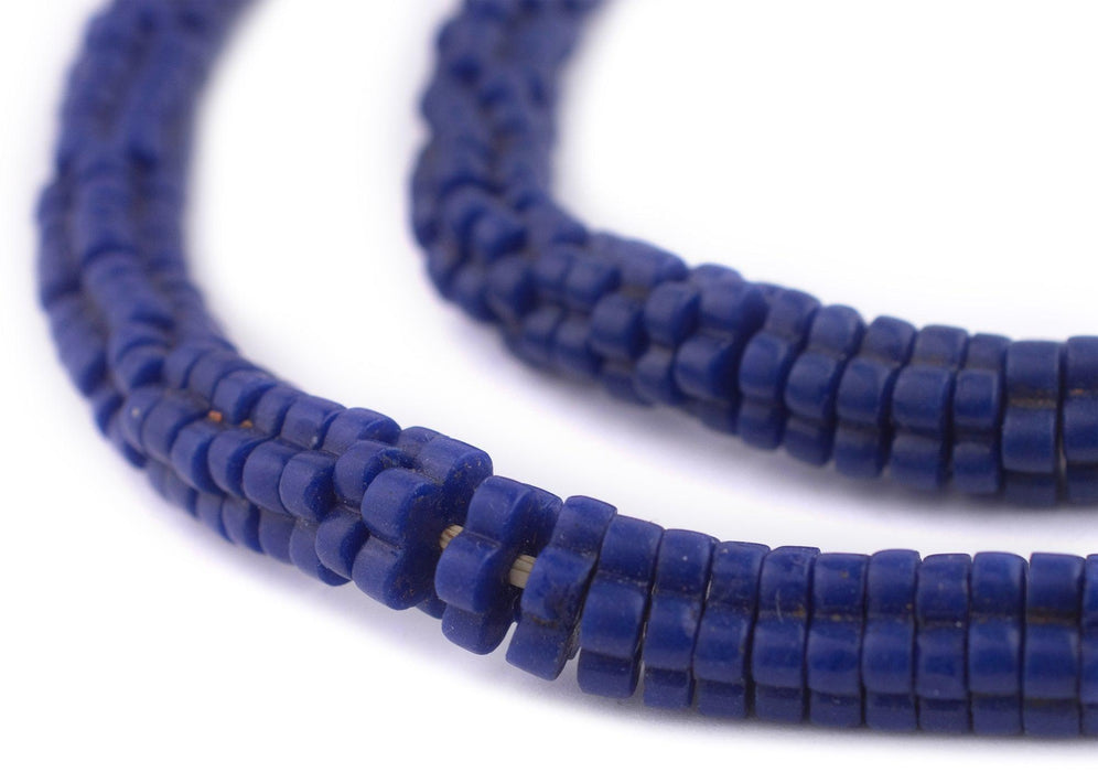 This unusual strand of vintage flower beads likely originates in the former Czechoslovakia. Beads such as this were traded to Africa and are found today in places like the Ivory Cost and Ghana. These are a type of pressed glass bead also known as Prosser beads and are made using a molding method that was commonly used to make buttons. Flower beads fashioned in a variety of colors and sizes. Larger sizes and certain colors such as black and white are less common that greens and browns. Hard to find strand! Each bead measures approximately 2 x 9mm with a hole size of approximately 2mm. You will receive a full strand measuring approximately 26".