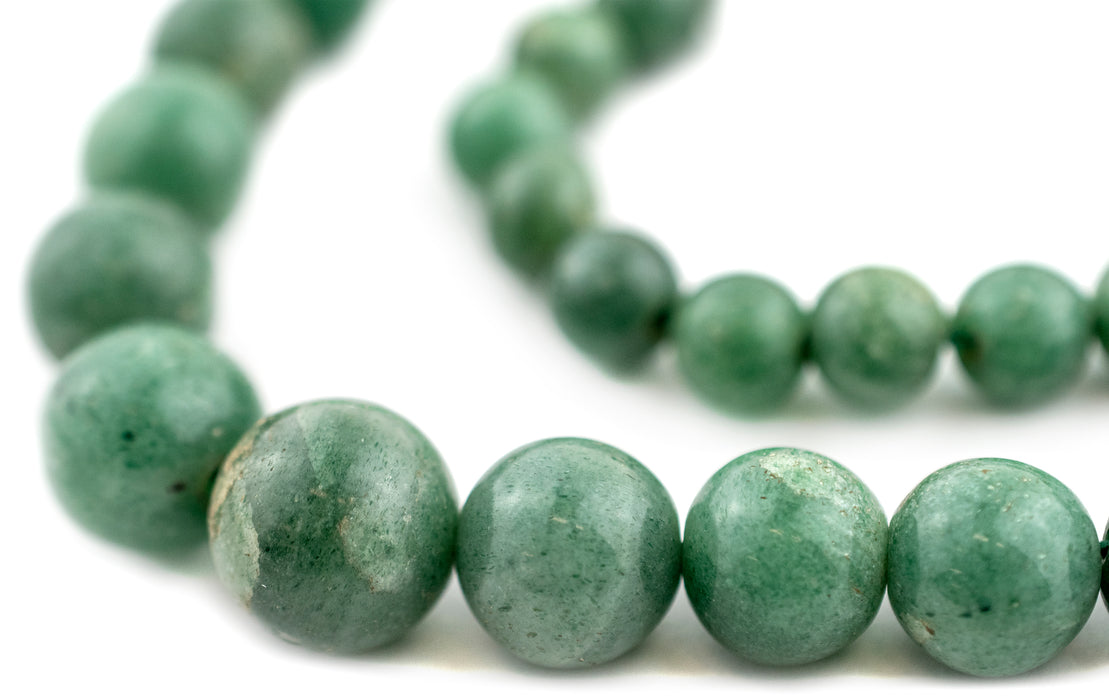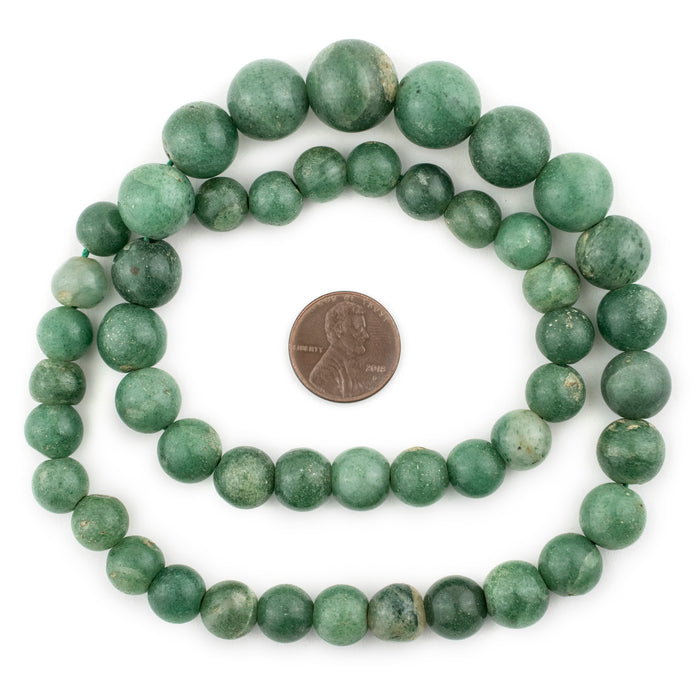 Vintage Graduated Round Green Aventurine Beads (9-15mm)