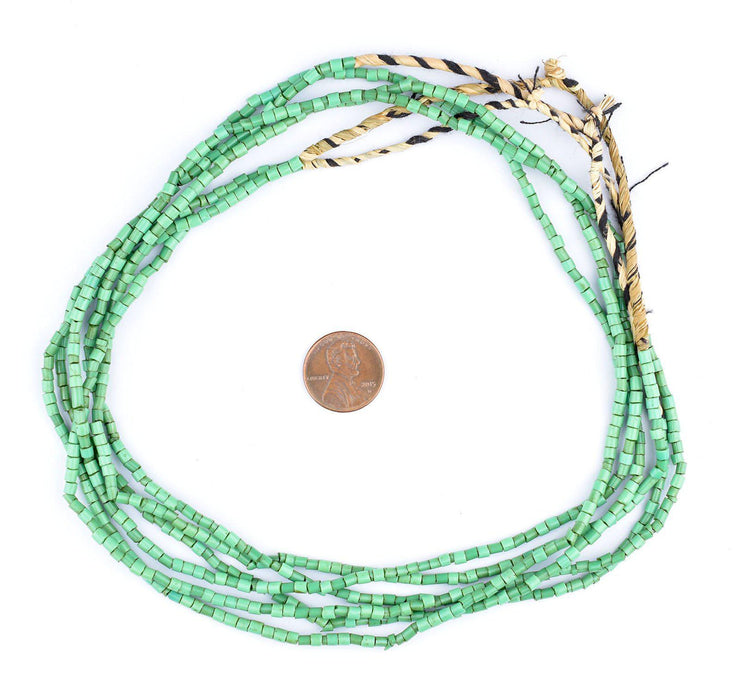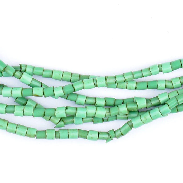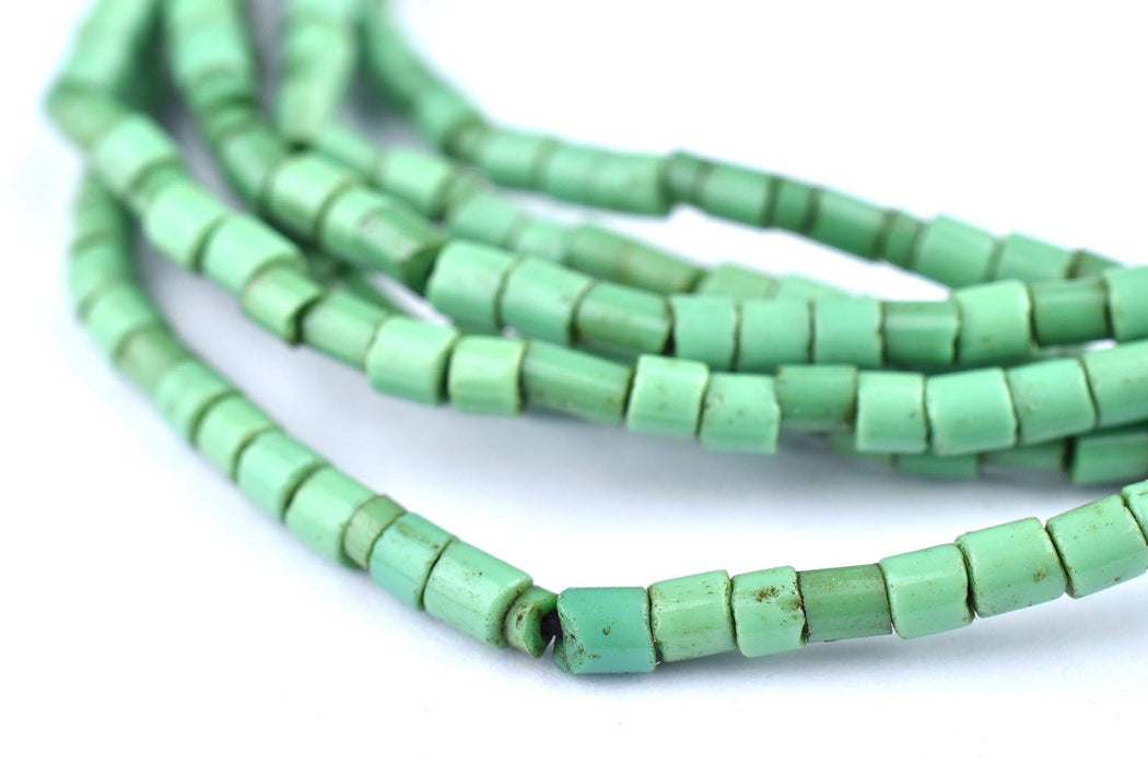 Beautiful strand of vintage green glass beads from Nigeria. Each bead measures approximately 1-5 x 3mm with strand length of 31". Some variation in individual beads is shown as pictured. Use these as spacers or mix and match colors to express your unique style! Multiple strands pictured. Each strand sold individually.