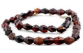 These exquisite Idar-Oberstein Faceted Agate Beads, are a testament to the rich heritage of European bead making. Originating from the historic town of Idar-Oberstein in southwest Germany, these vintage beads are steeped in a tradition that dates back to the early 19th century. Crafted from agate stone with meticulous precision, each bead tells a story of centuries-old stone cutting. The region's renowned legacy in stone cutting, predating the bead cutting era, lends an aura of authenticity and tradition to these timeless treasures. Traded to far-flung corners of Africa and the Middle East, these beads carry with them tales of cultural exchange and intrigue. This specific strand was sourced from Nigeria. Radiating with richness of natural brown hues, no two beads are alike. Embrace the history and elegance of the Idar-Oberstein Faceted Agate Beads, a true symbol of timeless beauty and craftsmanship.