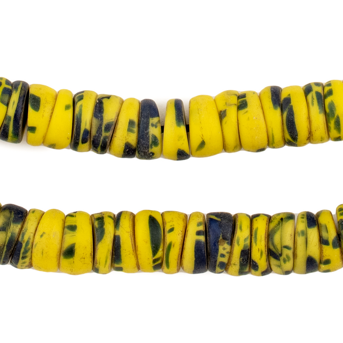 The unique look of Kakamba beads is easily recognized among the beads of Africa. Originally produced in former Czechoslovakia, these beads are made using a special process whereby glass is pressed in a mold. Also known as Prosser beads, these fun vintage African trade beads come in a variety of different colors and combinations. Each strand is unique. You will receive the exact strand shown in the photo. Bead and strand dimensions are approximate and may vary slightly. Get yours today!