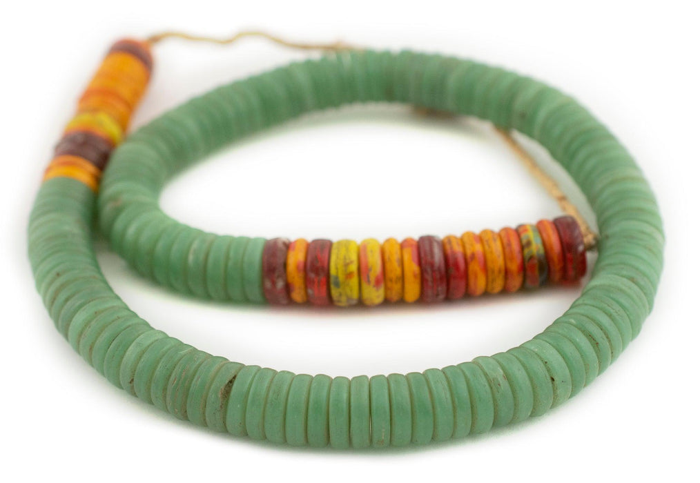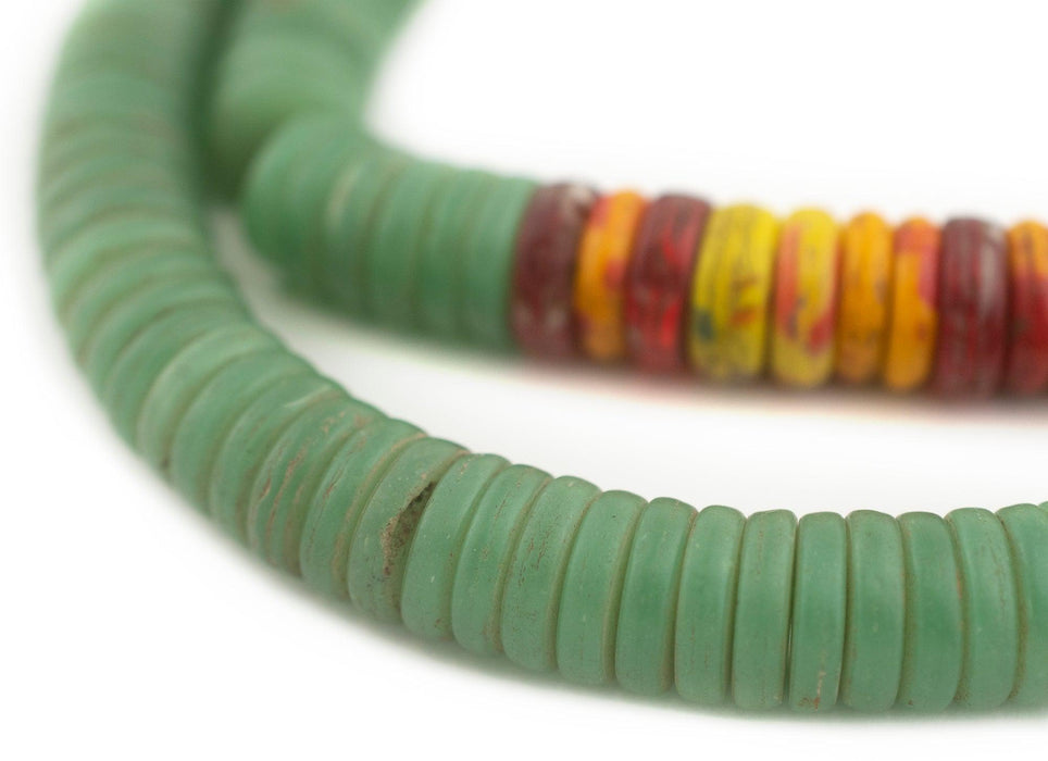 The unique look of kakamba beads is easily recognized among the beads of Africa. Originally produced in former Czechoslovakia, these beads are made using a special process whereby glass is pressed in a mold. Also known as prosser beads, these fun vintage African trade beads come in a variety of different colors and combinations. Each strand is unique. You will receive the exact strand shown in the photo. Bead and strand dimensions are approximate and may vary slightly. Get yours today!