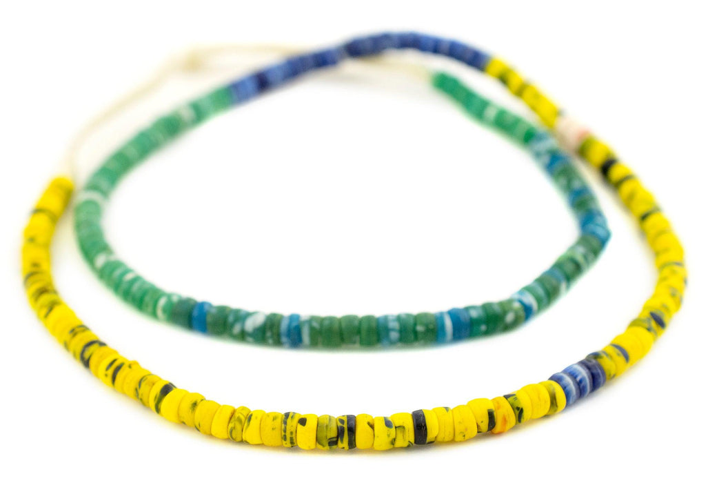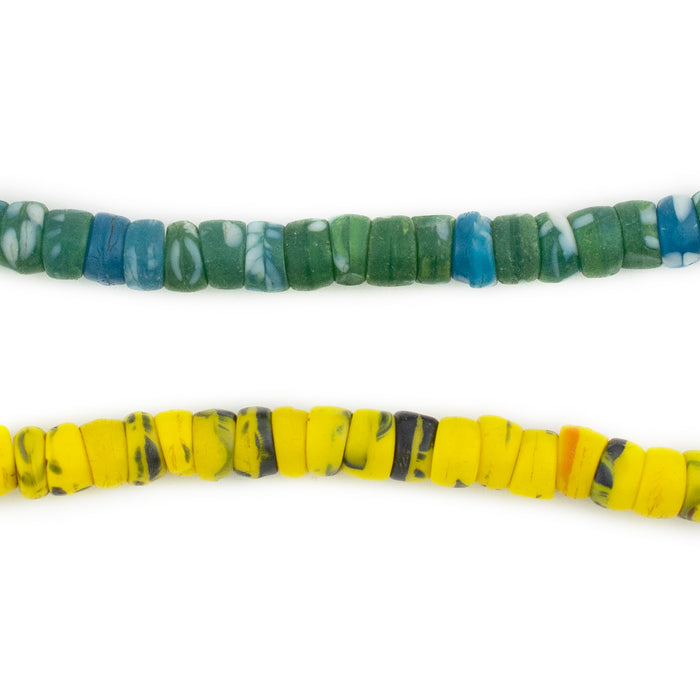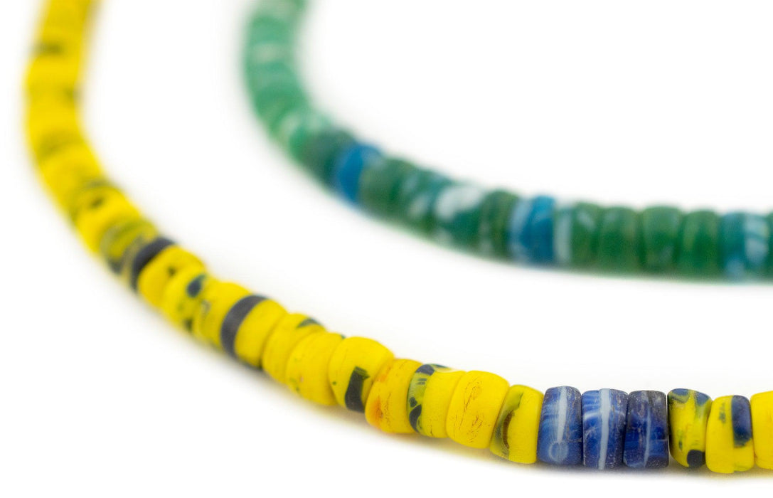 The unique look of kakamba beads is easily recognized among the beads of Africa. Originally produced in former Czechoslovakia, these beads are made using a special process whereby glass is pressed in a mold. Also known as prosser beads, these fun vintage African trade beads come in a variety of different colors and combinations. Each strand is unique. You will receive the exact strand shown in the photo. Bead and strand dimensions are approximate and may vary slightly. Get yours today!