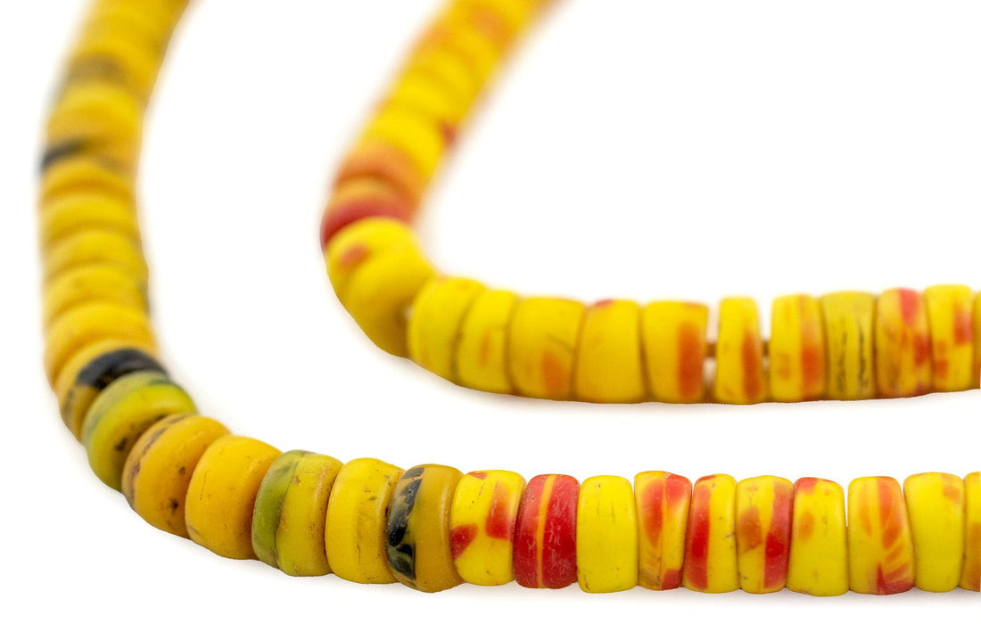 The unique look of kakamba beads is easily recognized among the beads of Africa. Originally produced in former Czechoslovakia, these beads are made using a special process whereby glass is pressed in a mold. Also known as prosser beads, these fun vintage African trade beads come in a variety of different colors and combinations. Each strand is unique. You will receive the exact strand shown in the photo. Bead and strand dimensions are approximate and may vary slightly. Get yours today!