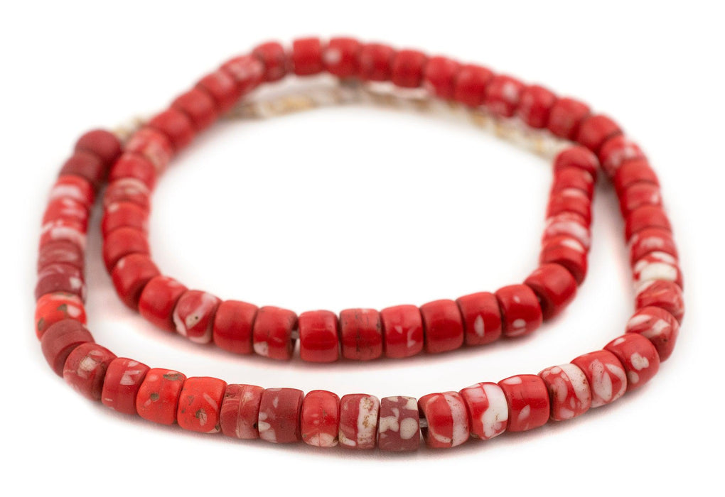 The unique look of kakamba beads is easily recognized among the beads of Africa. Originally produced in former Czechoslovakia, these beads are made using a special process whereby glass is pressed in a mold. Also known as prosser beads, these fun vintage African trade beads come in a variety of different colors and combinations. Each strand is unique. You will receive the exact strand shown in the photo. Bead and strand dimensions are approximate and may vary slightly. Get yours today!