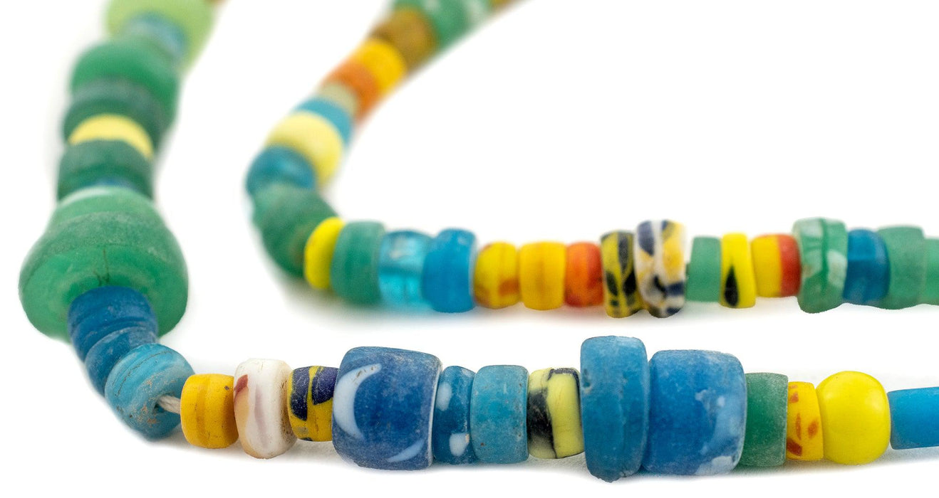 The unique look of kakamba beads is easily recognized among the beads of Africa. Originally produced in former Czechoslovakia, these beads are made using a special process whereby glass is pressed in a mold. Also known as prosser beads, these fun vintage African trade beads come in a variety of different colors and combinations. Each strand is unique. You will receive the exact strand shown in the photo. Bead and strand dimensions are approximate and may vary slightly. Get yours today!